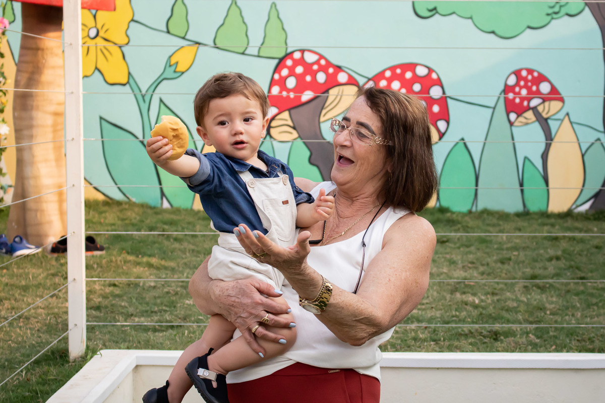 Ele chegou a festa num humor de "poucos amigos", sabe. Choroso só queria colo. Daí o pai deu um pedacinho de pão e o Gael ficou mais animado.
