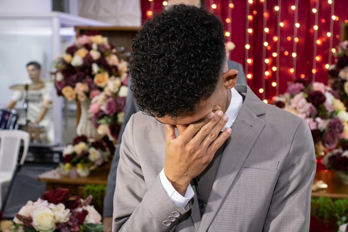 Eis que a noiva apontou na porta e páh. Noivo em lágrimas kkkkkkk Ele avisou, vai. Amo isso.